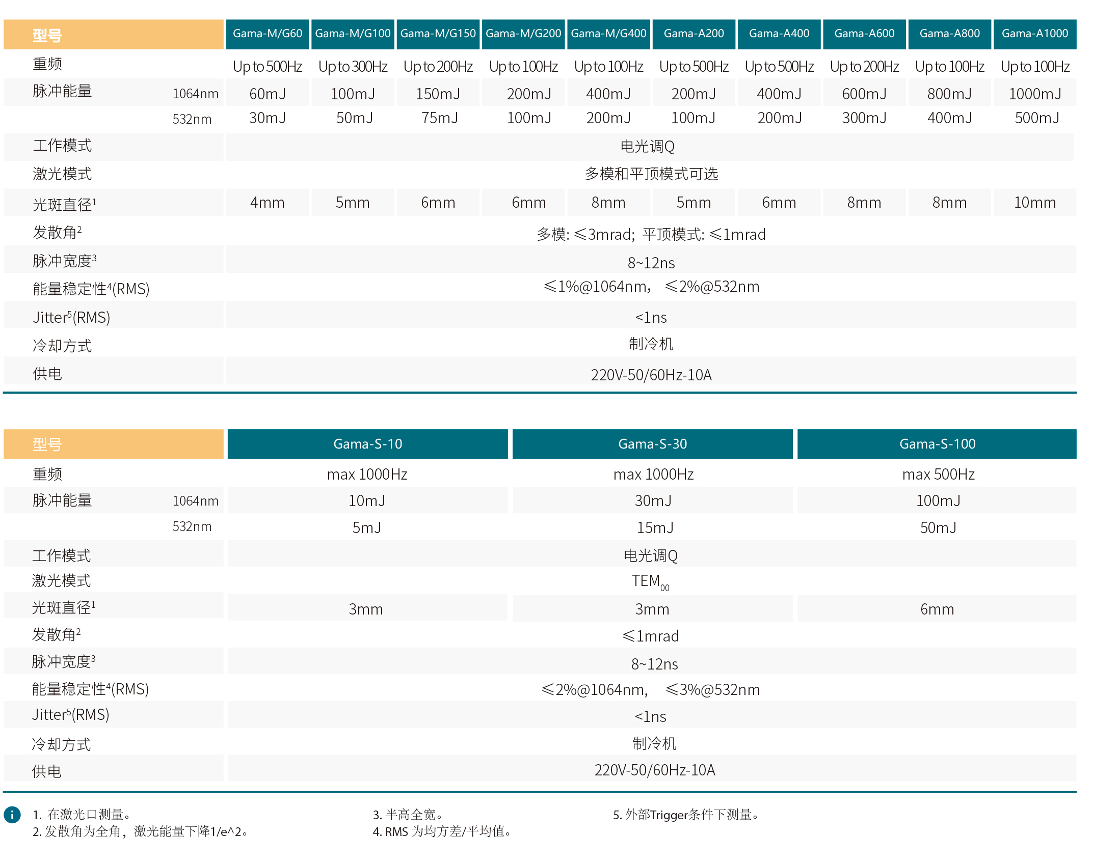 Gama系列是一款兼具高重频和高能量的二极管泵浦脉冲固体激光器(DPSS)广泛应用于激光雷达、泵浦OPO、泵浦钛宝石、激光烧蚀等应用。激光器重频有100HZ、200HZ、300Hz、500Hz、1kHz可选,脉冲能量可输出10mJ到1000mJ,平均功率高达100W。
