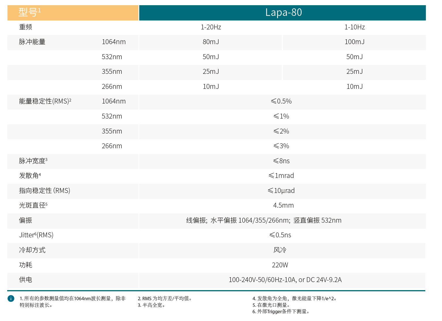Lapa系列是镭宝光电自主研发的风冷式二极管泵浦主动调Q纳秒脉冲固体激光器,适用于LIBS、激光雷达、LIF及激光清洗等领域。该系列产品采用VRM谐振腔设计,具备优良光束质量(M2值低、发散角小、聚焦能力强),基频单脉冲能量可达100mJ@10Hz与80mJ@20Hz。